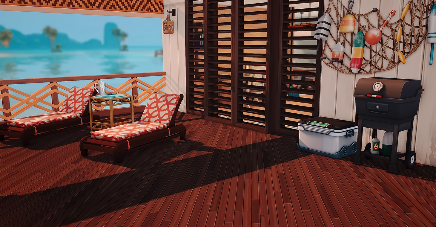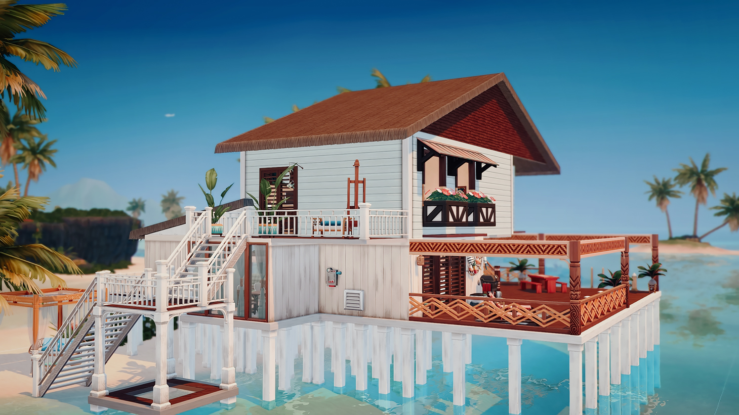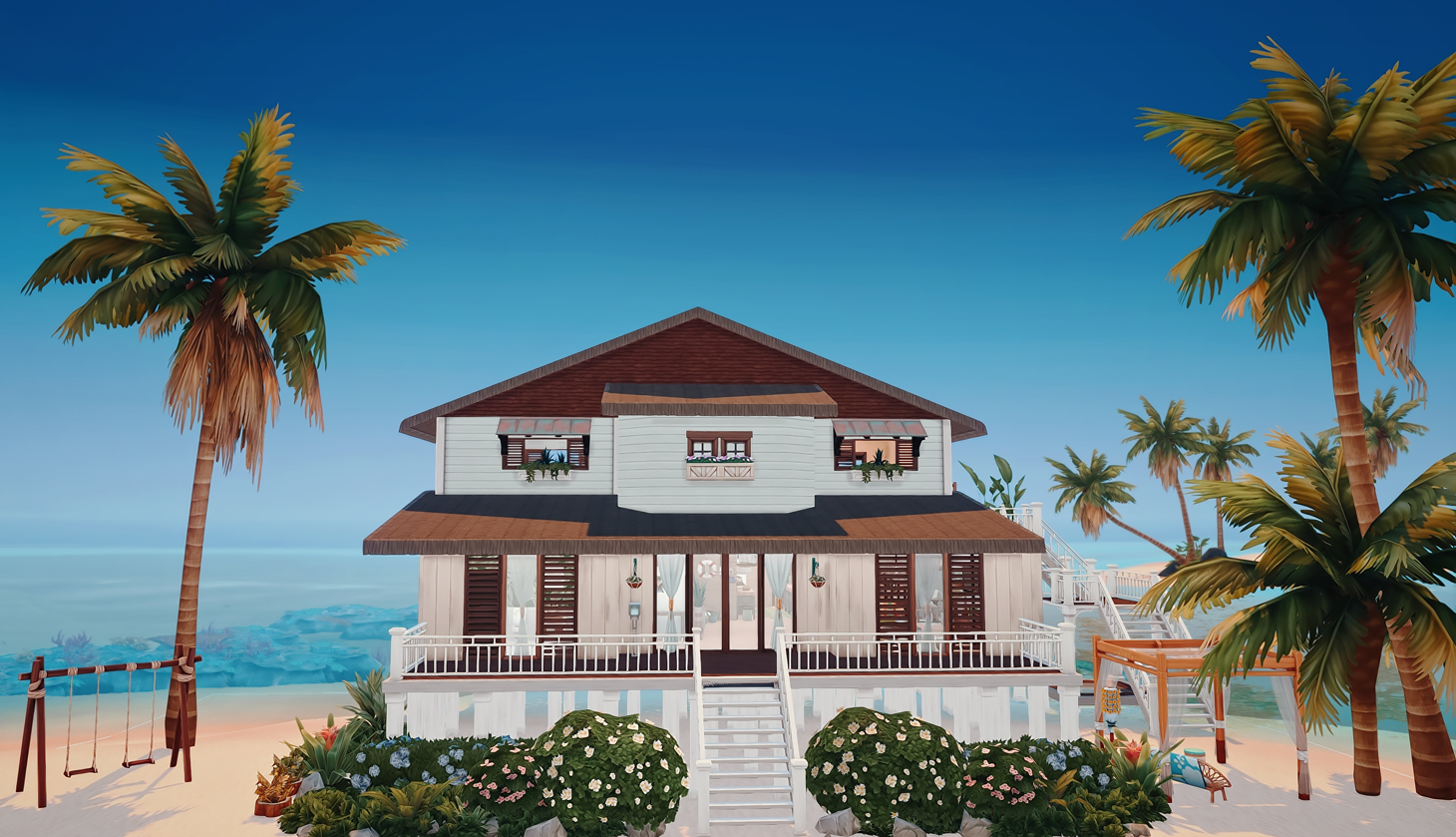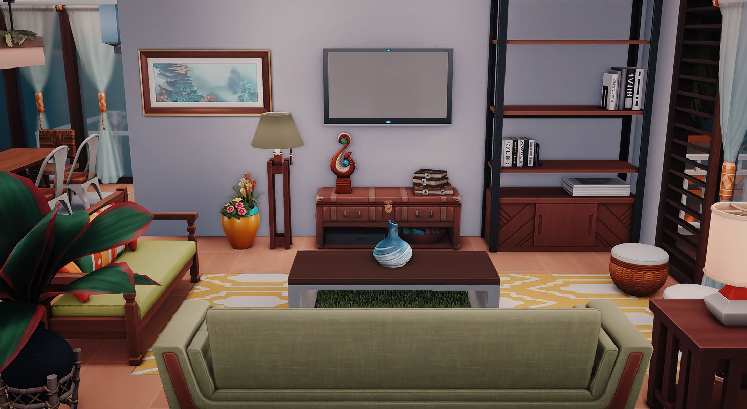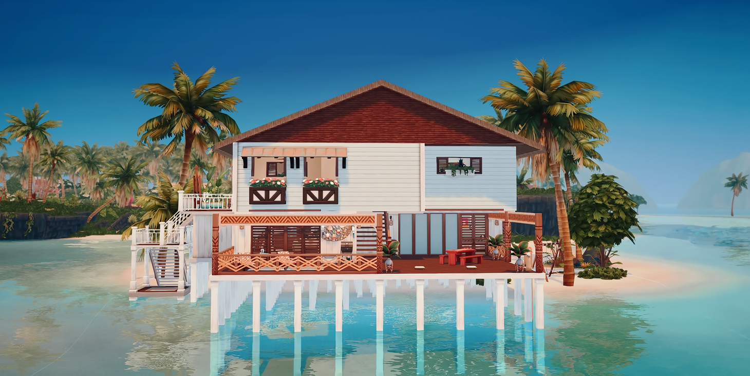 This is my build in honor of the Island Living expansion pack. I wanted to build a beach home a based on how I would imagine living on the beach, or even vacationing with my family.