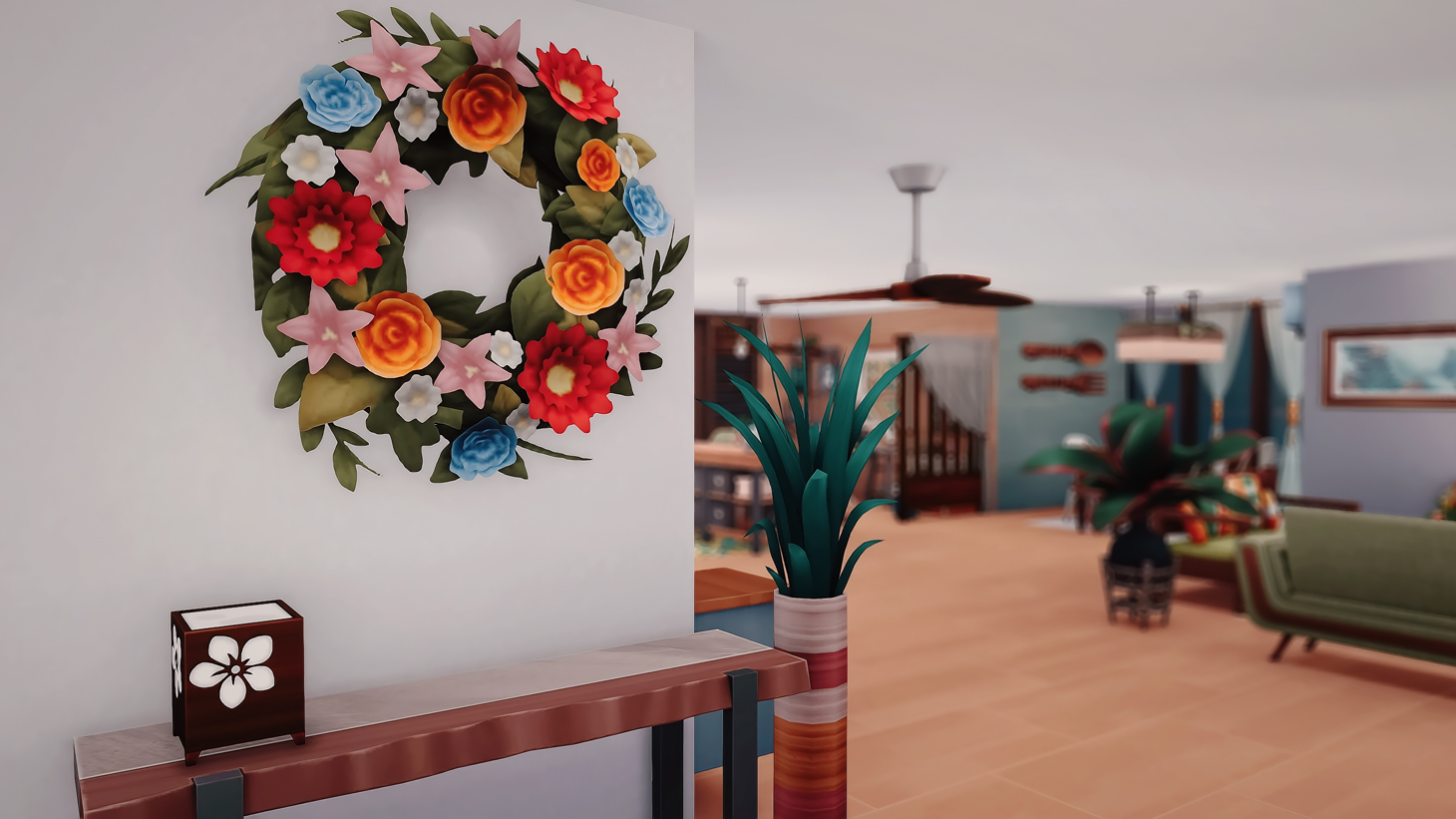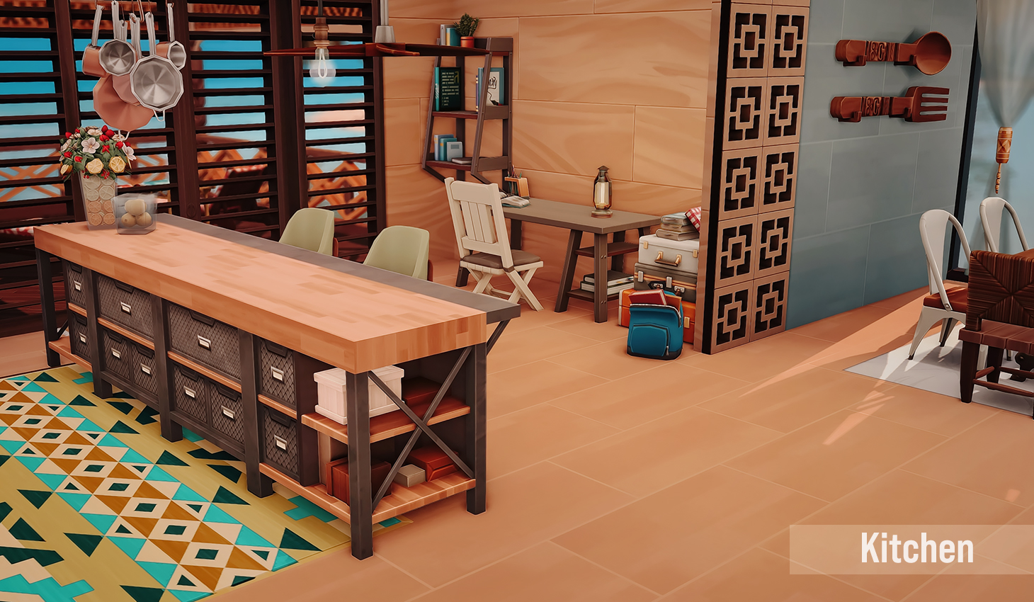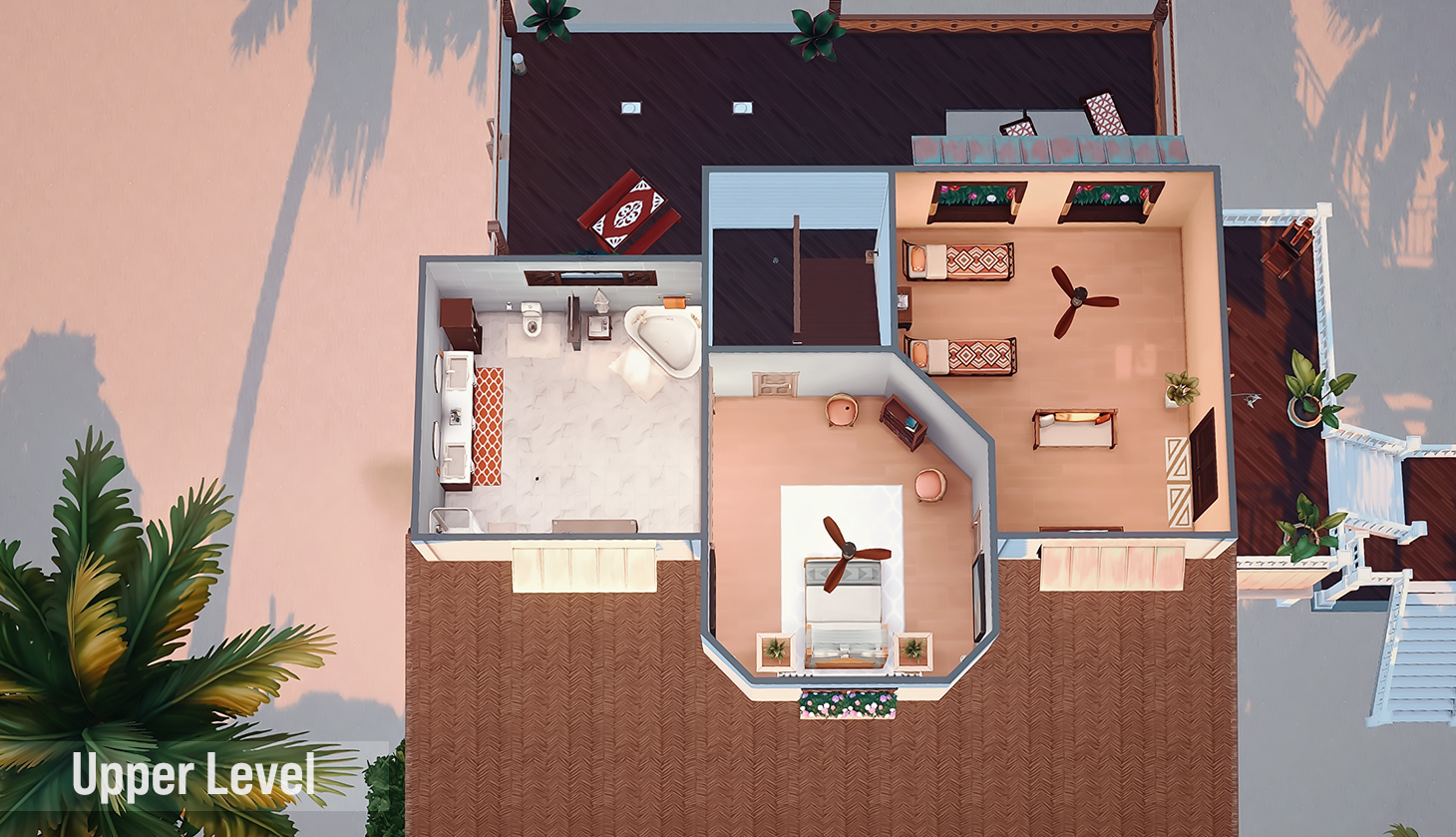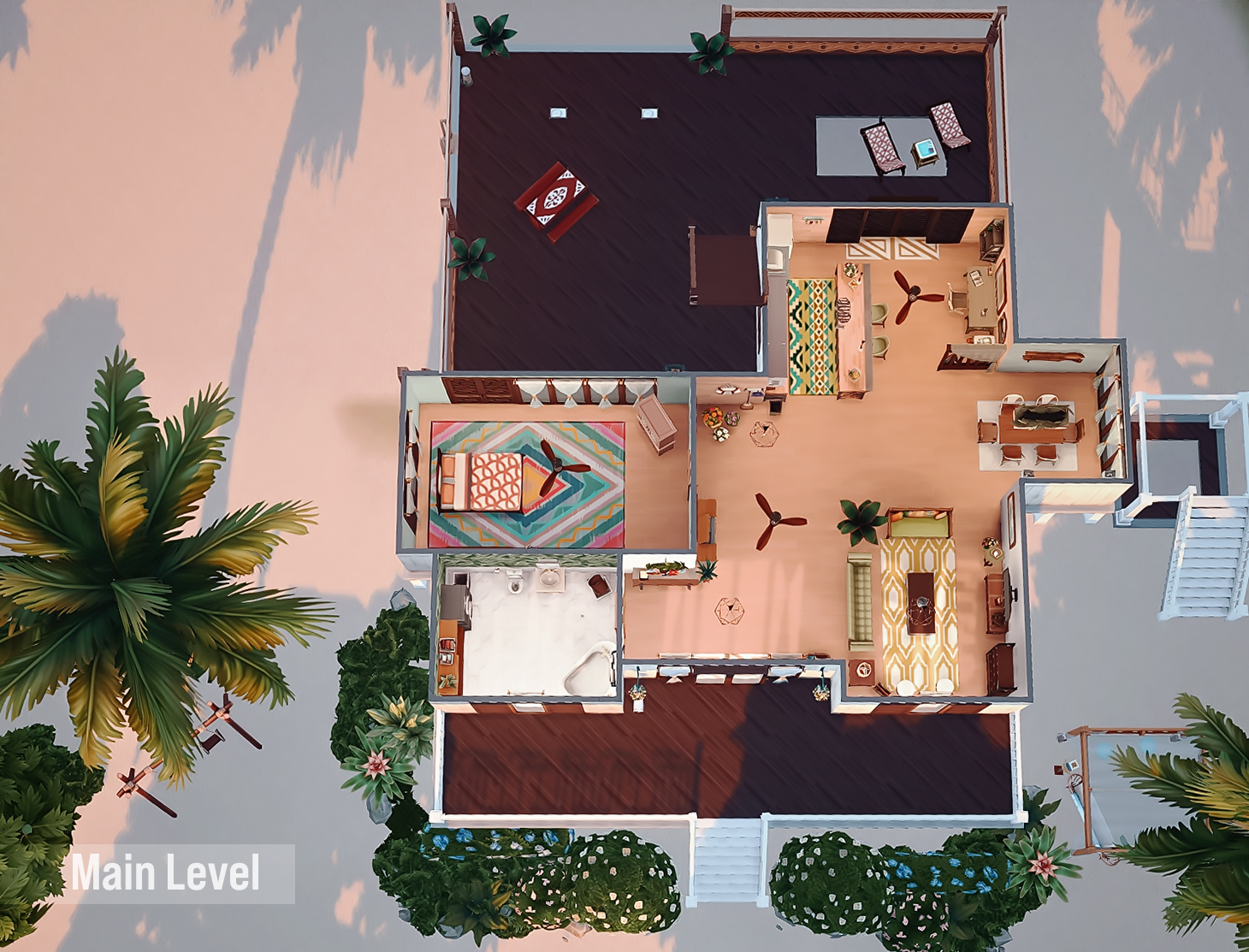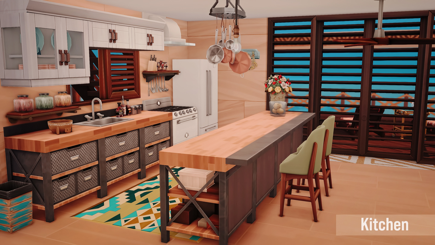 This is my build in honor of the Island Living expansion pack. I wanted to build a beach home a based on how I would imagine living on the beach, or even vacationing with my family.
